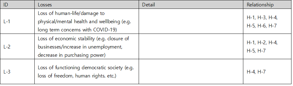 Table 4. Loss Scenario table of National Responses